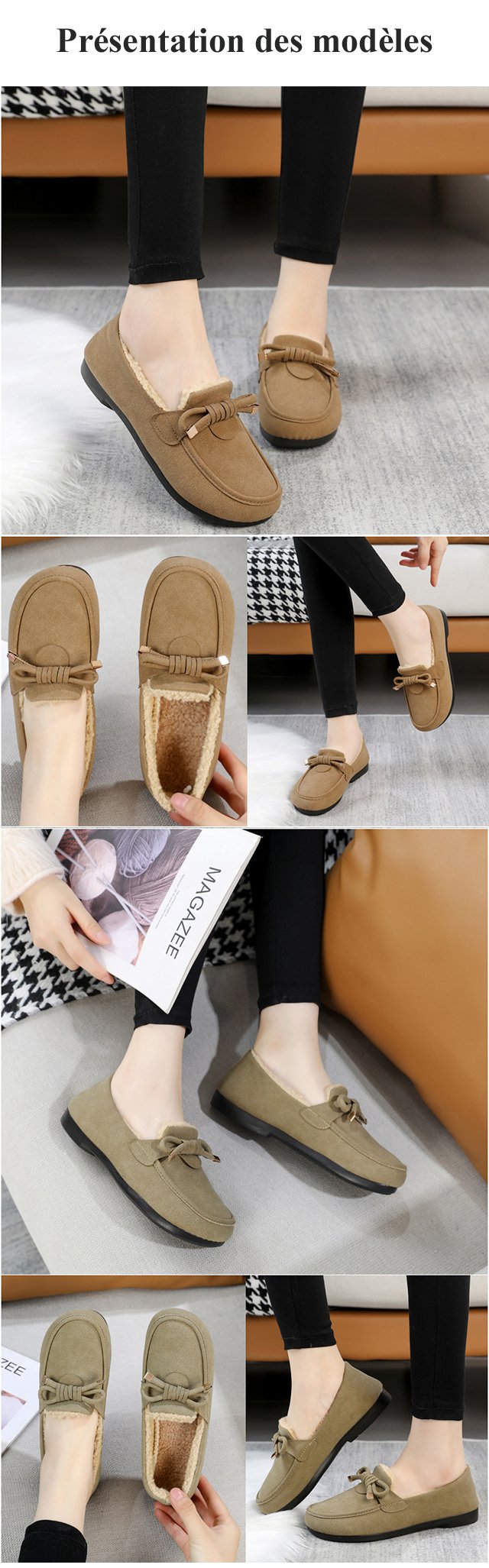 Chaussures décontractées à doublure en peluche à enfiler