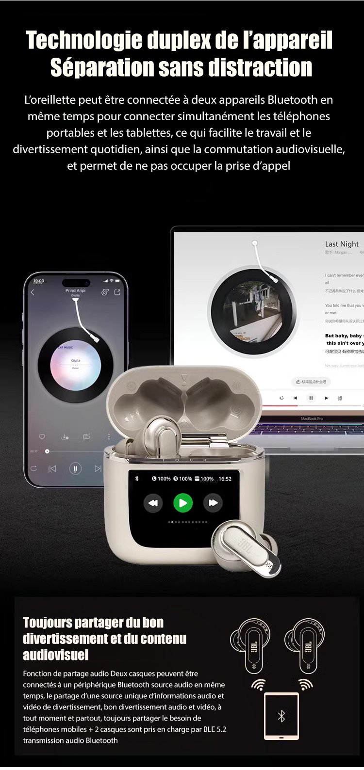 Oreillette Bluetooth à annulation de bruit entièrement intelligente